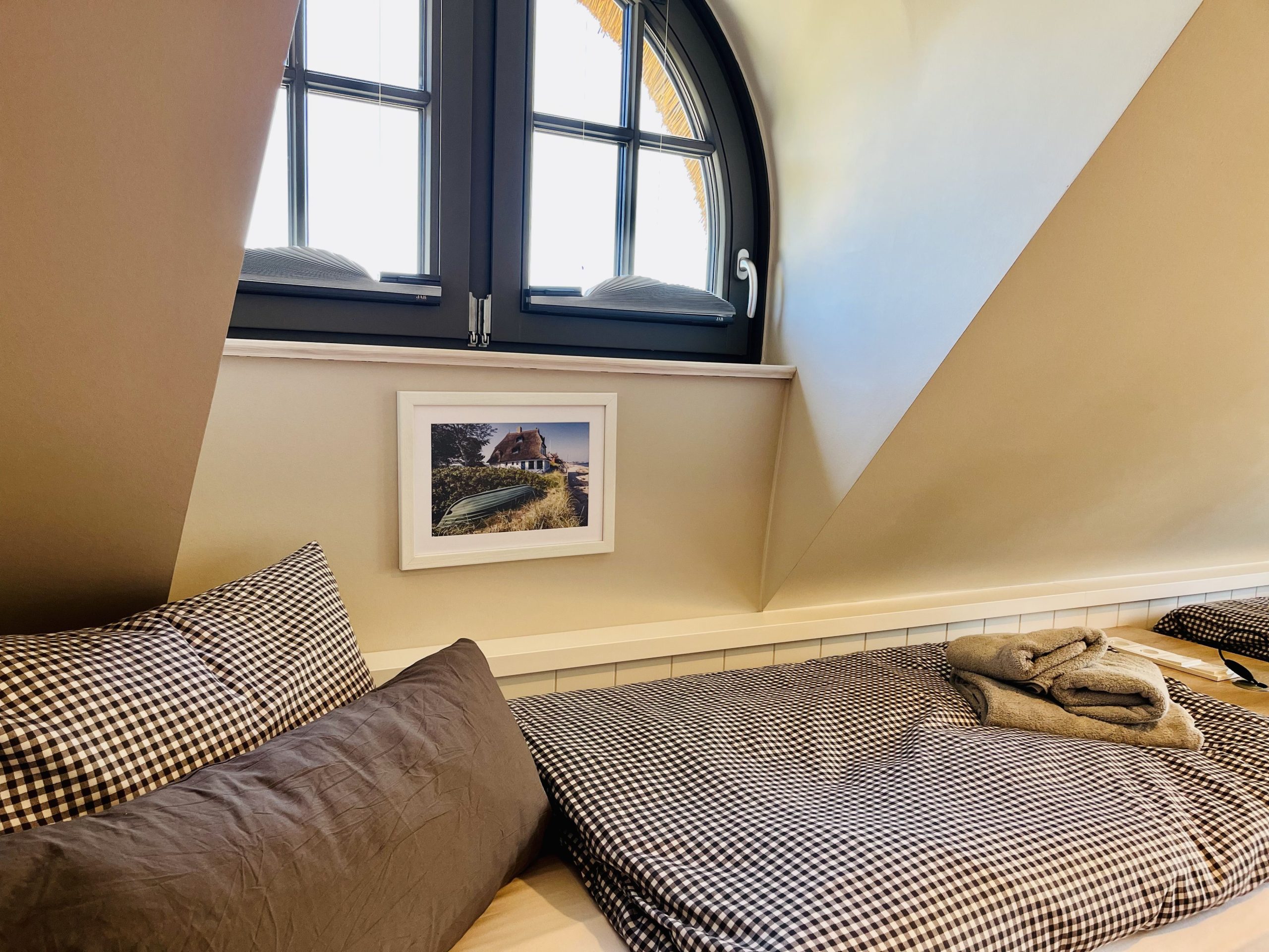 Zubereiten können Sie sie in der offenen und modernen Küche. Alle Geräte sind hochwertig. Ein komplettes Geschirr-Service befindet sich in den Schränken. Abwaschen muss hier zum Glück niemand. Es gibt einen Geschirrspüler. Weiter geht’s mit den beiden komfortablen Schlafzimmern. Ein bequemes Boxspringdoppelbett (180 x 200) und zwei Boxspringeinzelbetten (90 x 200) versprechen erholsame Träume. Die Zimmer verfügen über je einen Kleiderschrank und ebenfalls einen Flat-TV. Zwei Bäder mit Dusche und WC sorgen für genügend Raum zum Frischmachen. Das Bad im EG ist zudem mit einer Finnischen Sauna ausgestattet. Bei Anreise liegen Handtücher für Sie bereit und die Betten sind bezogen.