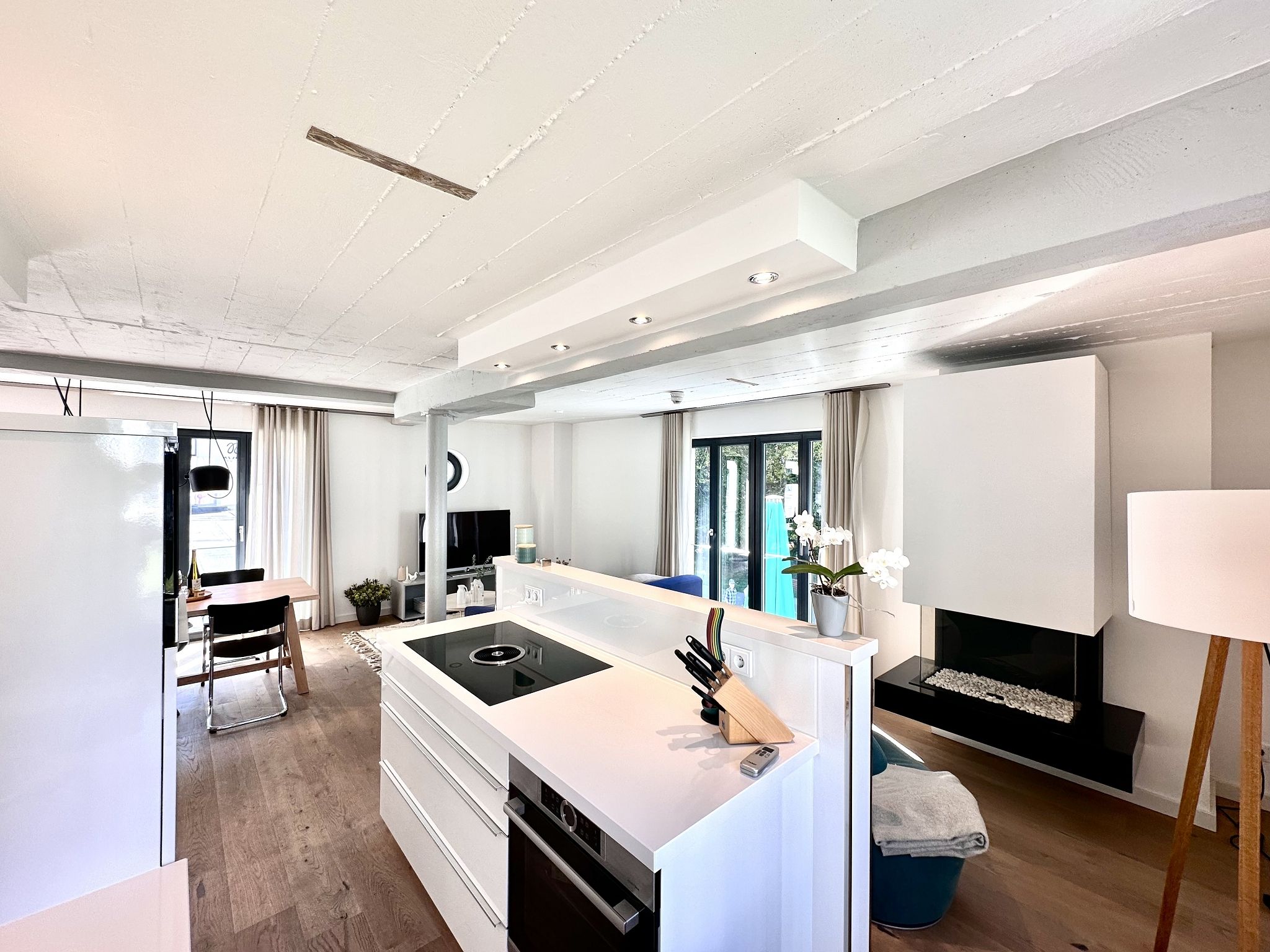 In diesem Urlaubsdomizil entspannen Sie mit allen Sinnen. In der voll ausgestatteten Küche finden Sie alles, was das Herz begehrt. Hochwertige Markengeräte von Bosch und WMF, erlesenes Geschirr – da wird das Kochen zu einem richtigen Urlaubs-Event. Essen können Sie am wunderschönen Eichenholz-Tisch auf komfortablen Lederstühlen. Für Kaffeeliebhaber bietet die Küche eine Kaffeefiltermaschine und eine Nespressomaschine inklusive einiger Starter-Kapseln für den ersten Kaffeegenuss am Anreisetag.