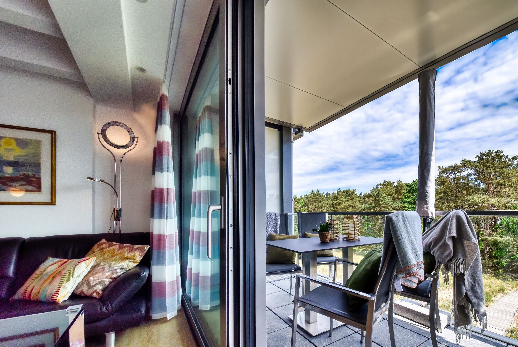 Eintreten und erholen! Den Blick schweifen lassen durch die raumbreiten Panoramafenster mit traumhaftem Blick über die Dünenlandschaft durch das Kiefernwäldchen aufs Meer, als wäre man selbst Teil der Natur. Und dann wenige Meter durch den eigenen Strandzugang über die Düne an einen der längsten und feinsten Sandstrände der Ostsee.