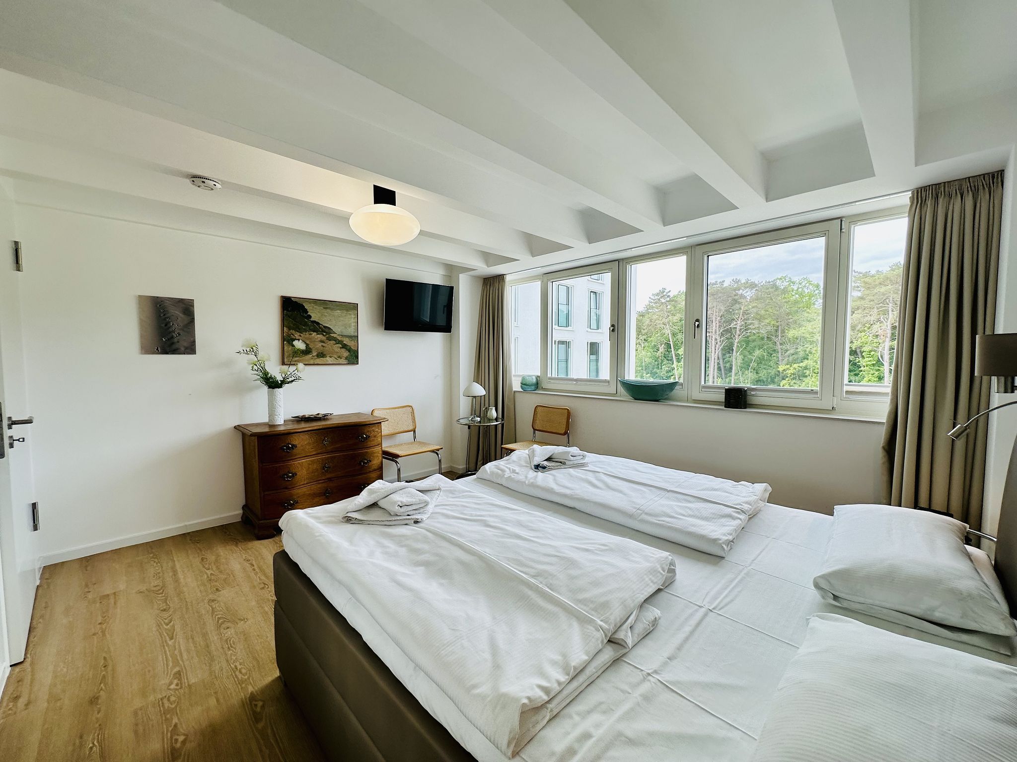 In beiden Schlafzimmern dieser Rügen Ferienwohnung befinden sich hochwertige Boxspringbetten, die Sie in den Schlaf schweben lassen, um Ruhe und Kraft zu tanken und den neuen Tag ausgeschlafen und erholt zu beginnen. Sie sind jeweils ausgestattet mit Flatscreen SmartTV-Geräten, sodass Sie auch vom Bett aus einem guten Film ansehen können. Für eine besonders ungestörte Nachtruhe besteht die Möglichkeit, die Fenster in beiden Schlafzimmern komplett zu verdunkeln. Durch die Fliegengitter im Fenster können Sie zudem Ihre Nachtruhe genießen, ohne von lästigen Blutsaugern gestört zu werden. Die Nach Belieben austauschbaren Vier-Jahreszeitenbetten sind allergikerfreundlich.