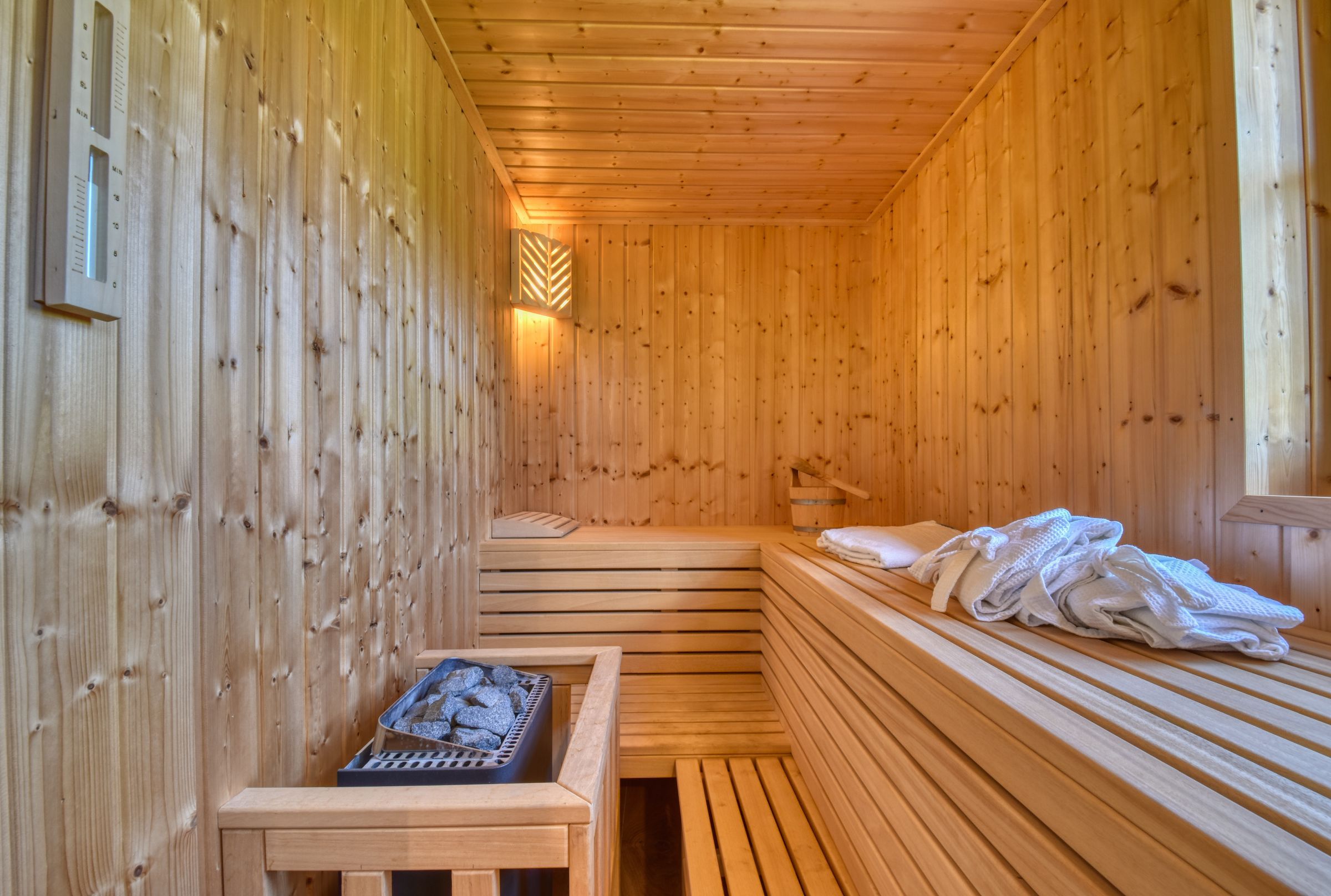 Für entspannte Stunden steht Ihnen eine hauseigene Sauna zur Verfügung, die Sie privat nutzen können. Der angrenzende Garten mit Gartenmöbeln und Gartenblick lädt zum Verweilen im Freien ein und bietet viel Platz zum Spielen und Entspannen. Die überdachte Terrasse ergänzt den Außenbereich als zusätzlicher Erholungsort. Somit bietet das Ferienhaus auch Wellnessoptionen direkt vor Ort.
