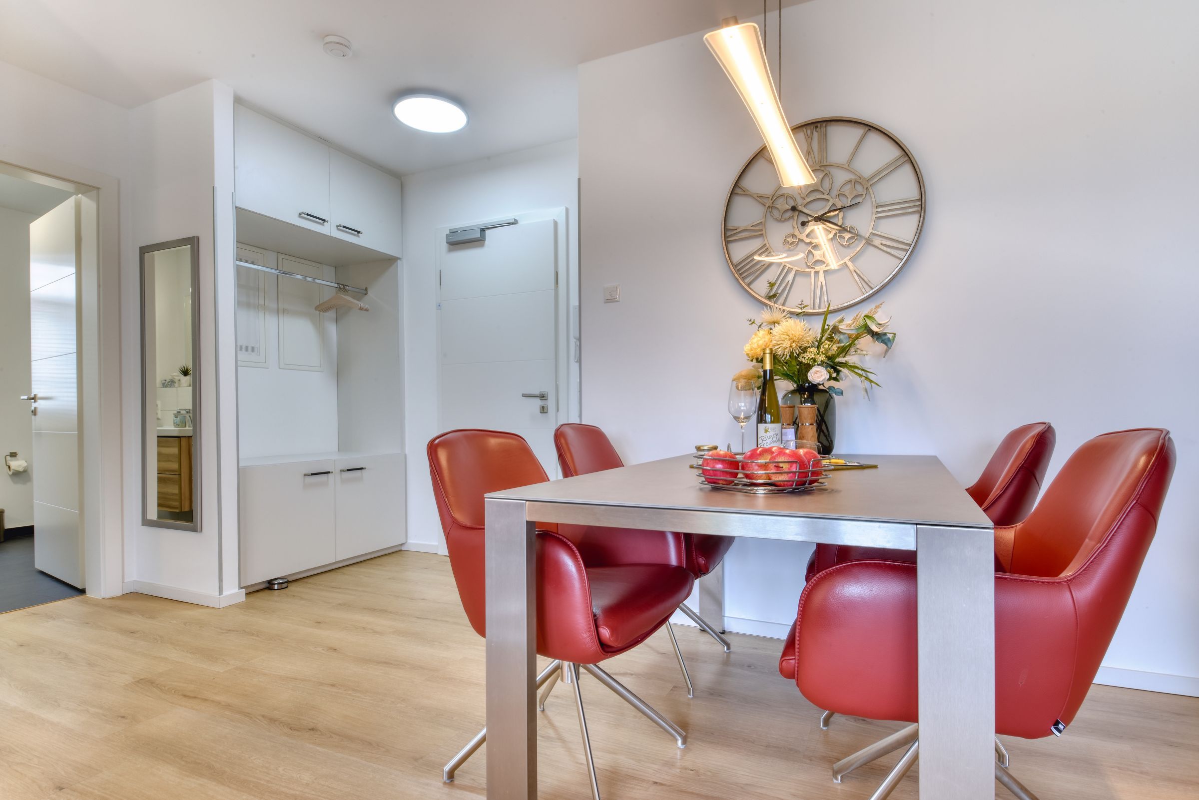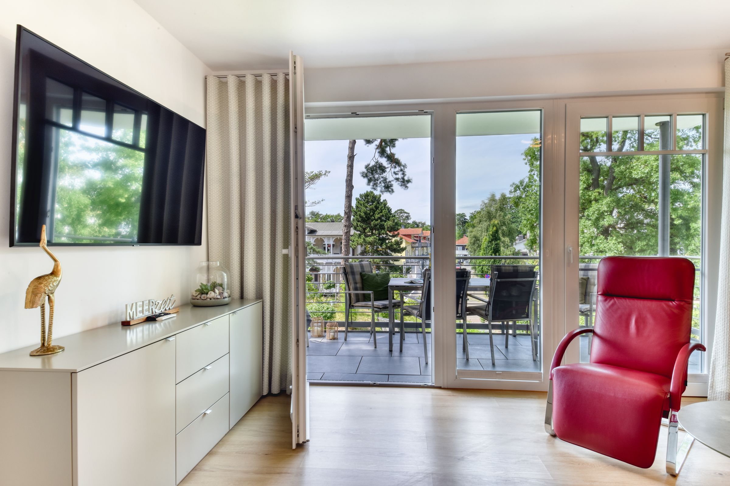 Der hauseigene Fahrstuhl bringt Sie direkt und bequem mit dem Reisegepäck vor die Eingangstür der Ferienwohnung "MeerZeit" in unserer schicken, neuen Villa "Düne 4" im Ostseebad Binz. Auf den 76 m² können es sich bis zu vier Personen richtig gut gehen lassen und gemeinsam auf dem sonnigen Balkon entspannen und eine unvergesslich schöne Urlaubszeit verbringen. Die Einrichtung der 3-Zimmer-Ferienwoh